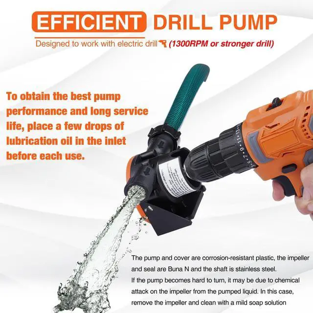 The TOPWAY hand drill pump is equipped with water hose&oil tube for your different kinds of need. The pump and cover are corrosion-resistant plastic, the impeller and seal are Buna N and the shaft is stainless steel for long time.