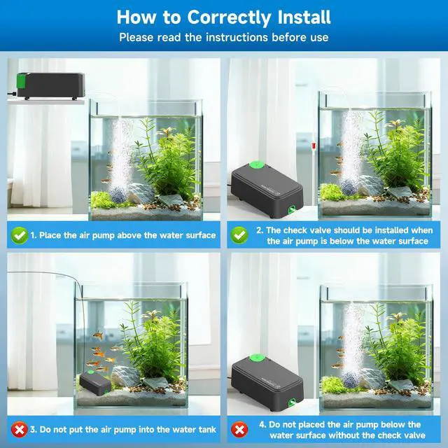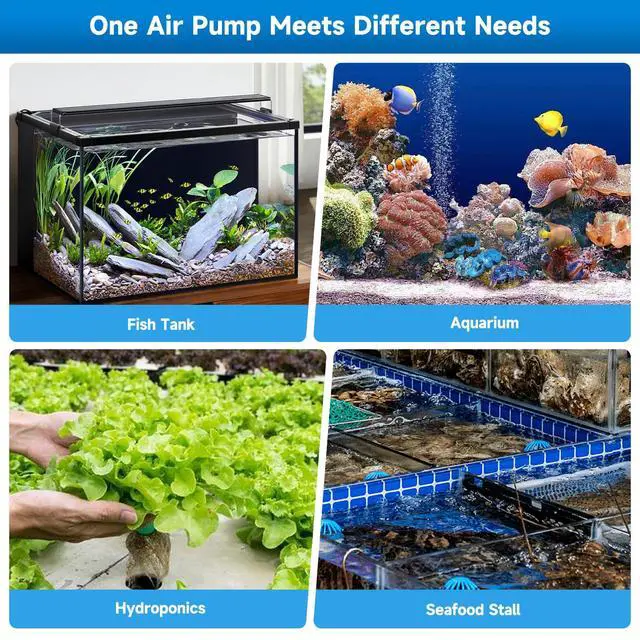 Energy-Saving Power for Healthy Water The pump efficiently generates a stream of oxygen-rich micro-bubbles via the included airstone, promoting a healthy and vibrant environment for fish and live plants. It is ideal for freshwater or saltwater aquariums with a water depth of up to 2 feet.