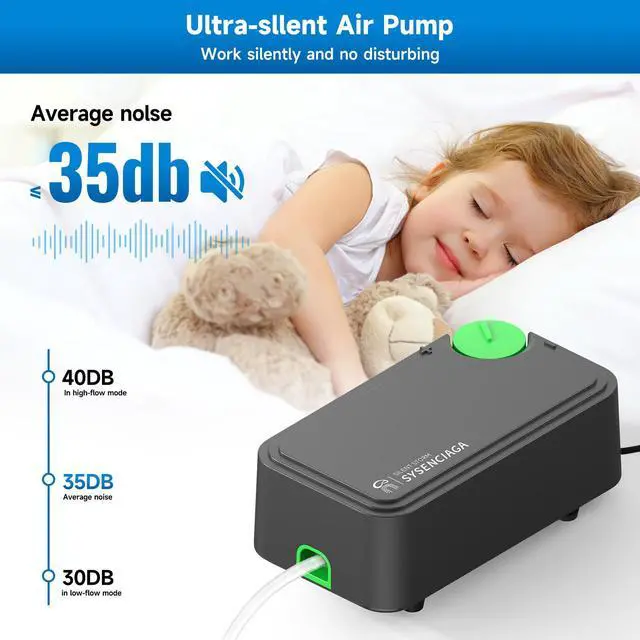 Upgraded Dual-Layer Dampening for Whisper-Quiet Operation The SYSENCIAGA aquarium pump features a newly upgraded dual-layer shock-absorbing design. Equipped with four silicone feet and a thickened housing, it effectively absorbs vibrations and minimizes noise transmission for library-quiet operation, ensuring no disturbance to you or your aquatic pets.