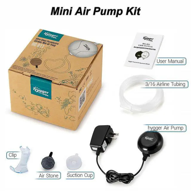HG-811 Fish Tank Air Pump Kit comes with all air pump accesories you need — air stone, air pump, suction cup , clip and a 3.6 ft silicone tube, providing nice bang for your buck. Once you receive it, you can install and pump oxygen for your fish right away.