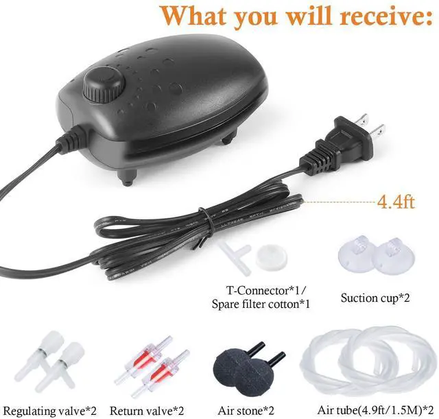 This oxygen pump can be used for 2 fish tanks at the same time, also can be connected with a T-connector to become an outlet.