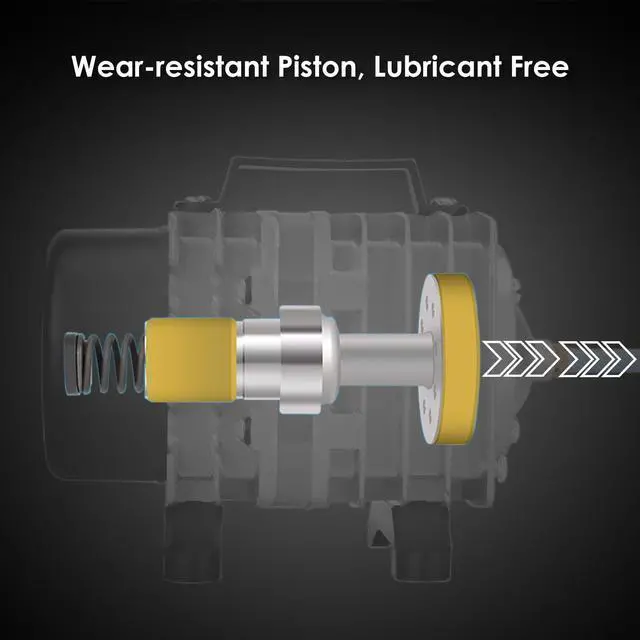 The design features lubricant free, wear-resistant materials for the cylinder and piston, great heat dissipation with the aluminum alloy housing, while outputs powerful air pressure and huge air flow.