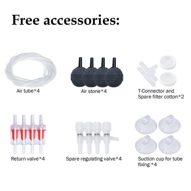 If you install the aquarium air pump lower than the water level, check valves should be installed, otherwise the water in the air hose will flow back into the air pump, causing damage to the air pump.