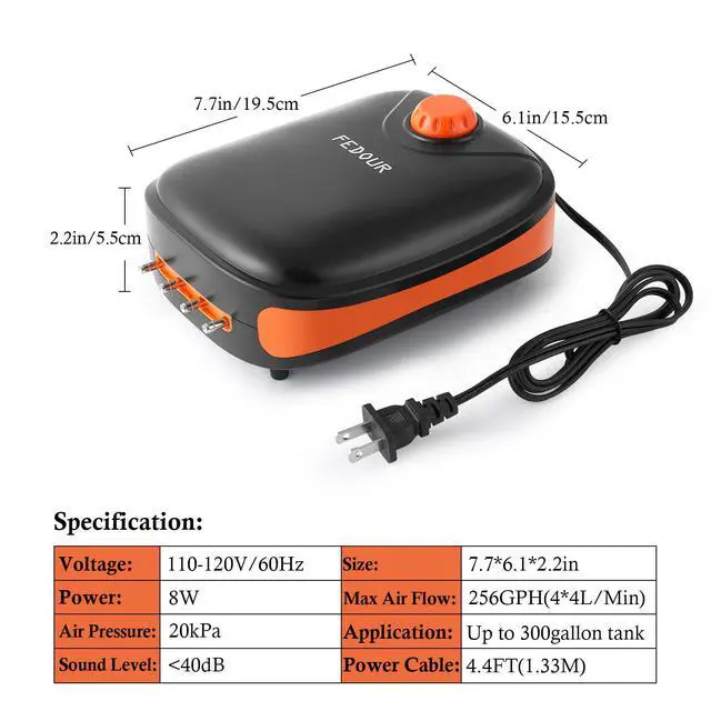 FEDOUR 4-outlet air pumps should be installed higher than the water level to prevent the water from flowing back into the air pump.