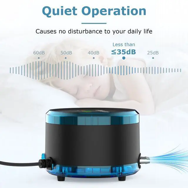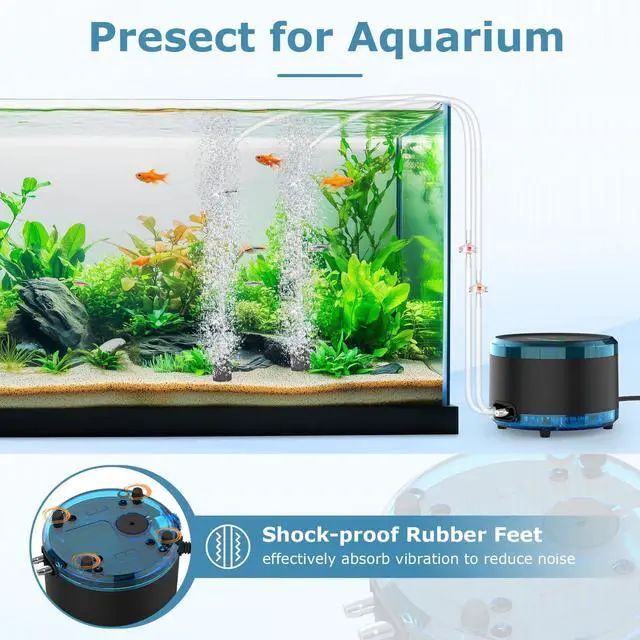 • Ultra-Quiet: The fish tank air pump is well constructed with a thickened ABS shell and a double-layer structure for quiet operation. It also comes equipped with four shock-absorbing rubber feet to minimize vibration. No disturbance to your daily life