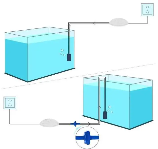 3. Place the pump above the aquarium or bucket if possible. Or you need to add a check value (the blue valve) between air pump and air stone to prevent back siphoning.