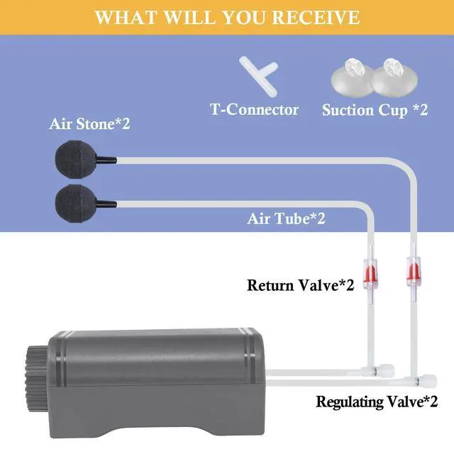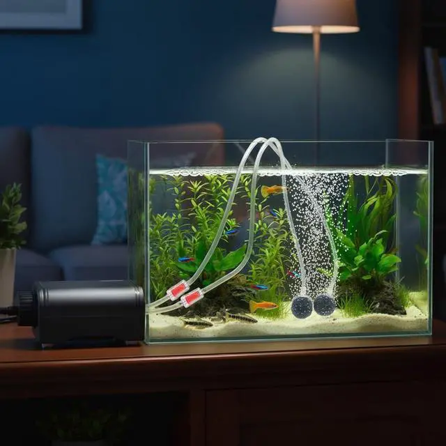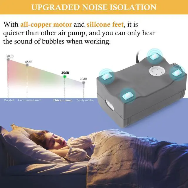 With all-copper motor and silicone feet, this fish tank air pump is quieter, and you can only hear the sound of soft air bubbles when working.