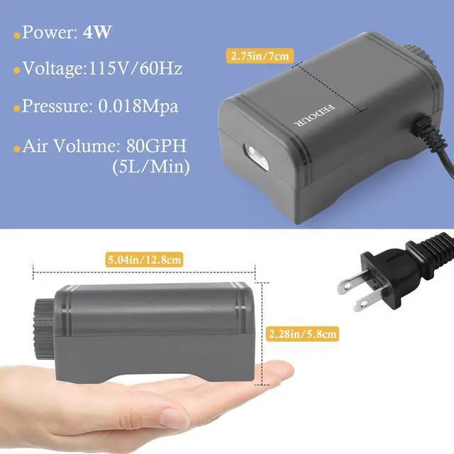FEDOUR 80GPH Ultra Quiet Aquarium Air Pump with All Needed Accessories