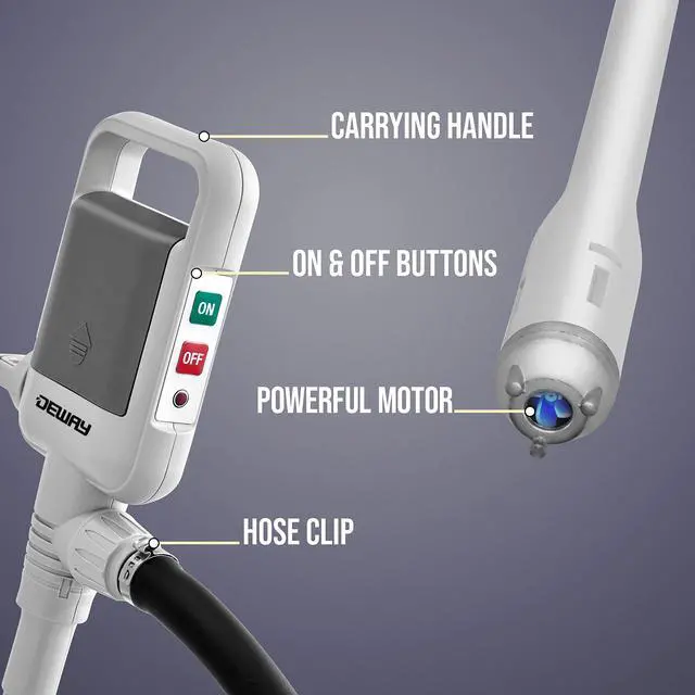 Tired of money down the drain? Siphon like a pro with this multipurpose Automatic Fuel Transfer Pump from Deway. Easy, one-touch activation has you transferring all kinds of gas, oil, water, and other liquids without the hassle of bulky hoses, inconvenient hand pumps, separate adapters, or heavy lifting. Our lightweight, high-speed siphon delivers a powerful 1.1-2.4 gallon per minute flow at the touch of a button, with long-lasting battery usage that enables up to 100 gallons of transfer power. With two convenient hose length options, you can purchase based on your preferences, with the shorter hose providing greater pump speed and the longer hose offering greater maneuverability. When youve made your choice, just screw the hose directly onto the supply container, position the drain spout into any receptacle, press On, and watch liquid move instantly. Whether youre changing tank water, filling a generator, emptying lawn equipment, or storing your motorcycle for the season, this all-purpose device gets the job done fasterand saferthan siphoning by mouth (and other transfer methods). Conserve fuel, and never spill a drop! Add an Automatic Fuel Transfer Pump from Deway to your cart today!