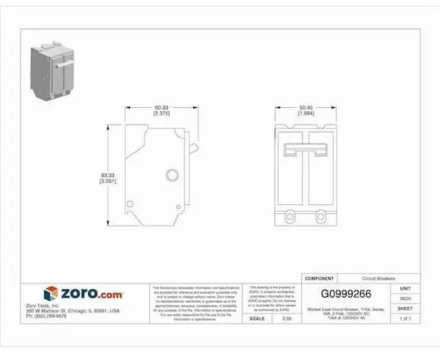 Miniature Circuit Breaker, Amps 40 A, AC Voltage Rating 120/240V AC, Circuit Breaker Type Standard, Number of Poles 2, DC Voltage Rating Not Rated, Circuit Breaker Actuator Toggle, Circuit Breaker Mounting Style Plug In, Compatible Panelboard/Load Center Series AQ, Phase Single, Series THQL, Max. AIR Rating 10kA at 120/240V AC, For Use With Power Mark Gold Load Centers and AQ Lighting Panels, Terminal Connection Lug, Frame Size 100A/THQ, Length 3.28 in, Width 2 in, Depth 2.38 in. This item has been restricted from sale in the following state (s): []