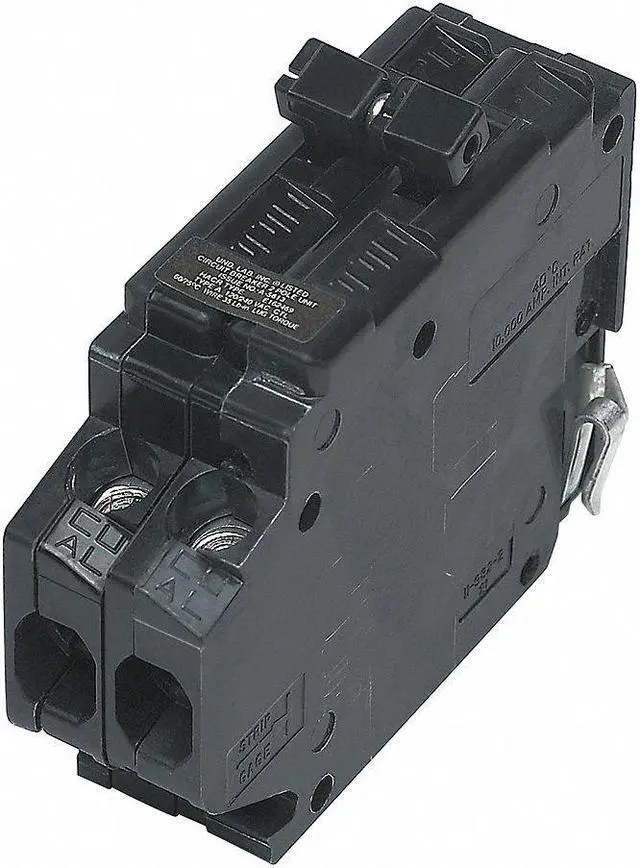 This plug in circuit breaker has one phase, and is a replacement for obsolete load centers. The breaker can be used in applications such as freezers, window air conditioners, kitchen circuits, electric heaters, and more. Circuit Breaker, 40A, 2P, 10kA, 120/240VAC