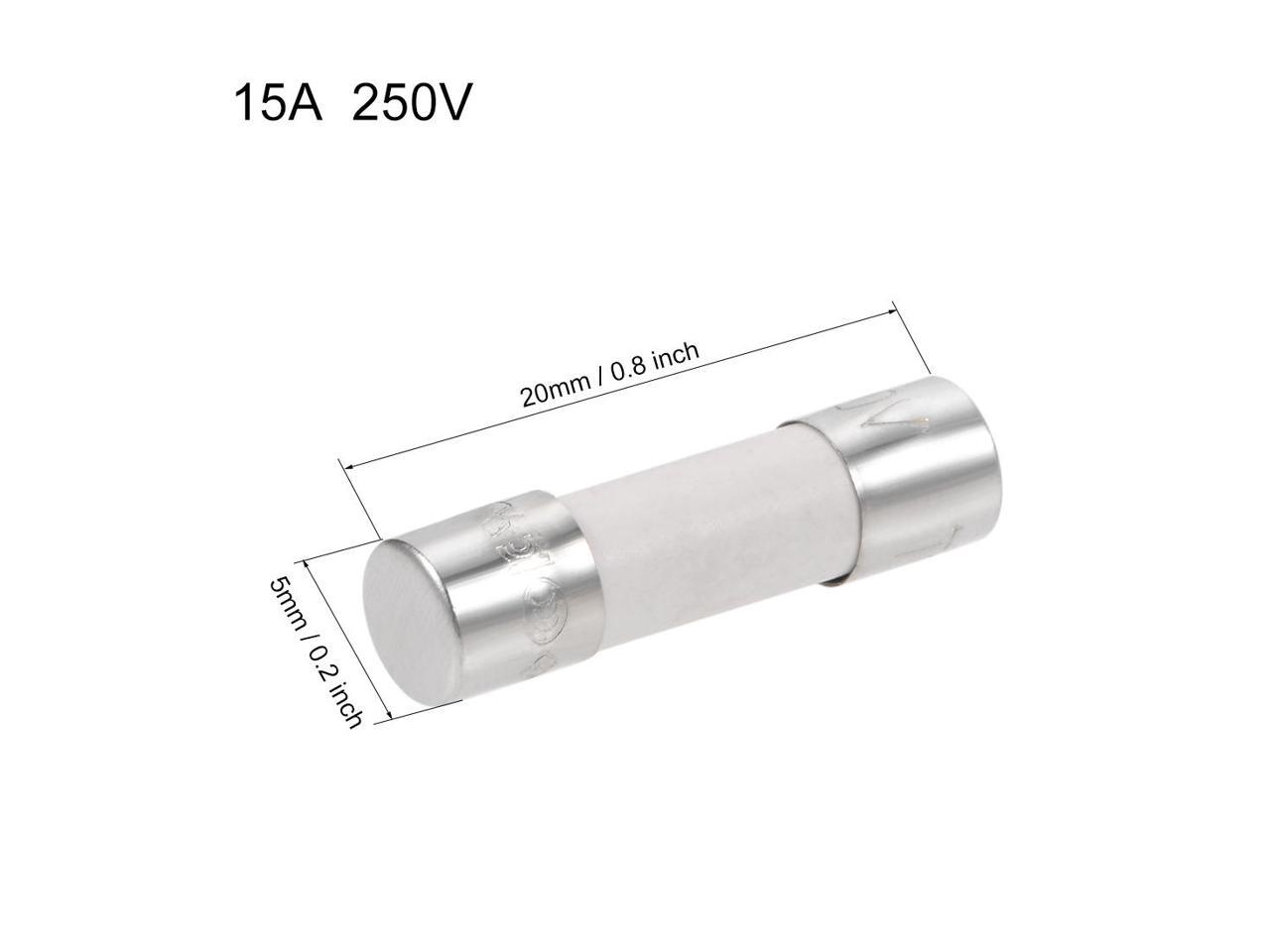 Automotive Cartridge Fuses 15A 250V 5x20mm Slow Blow Replacement for Car Stereo Audio Alarm Amplifier Ceramic 10pcs