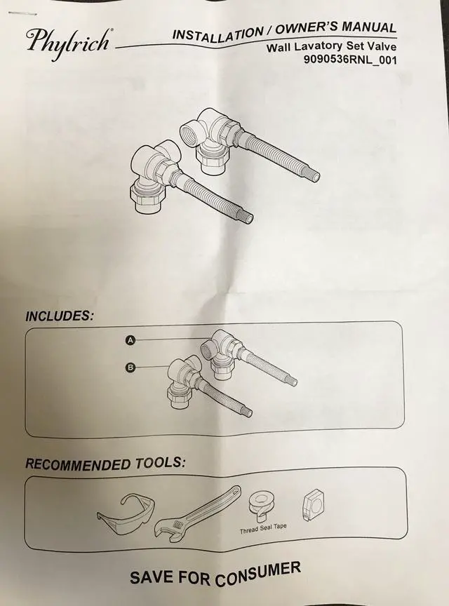 Phylrich 9090536RNL-001 Wall Lavatory Set Valve