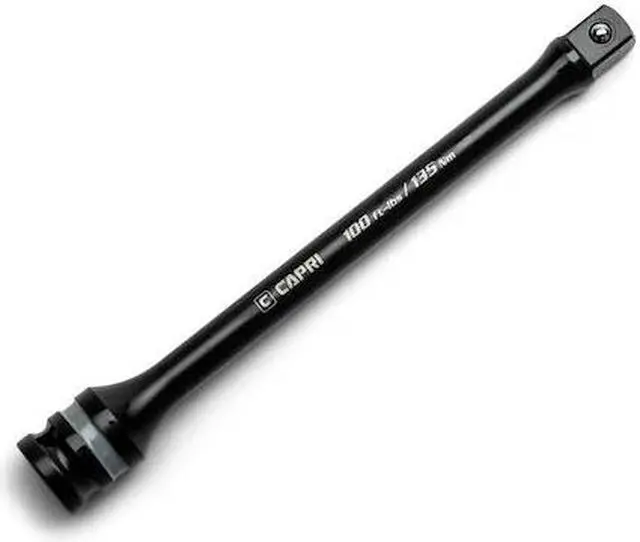 California Proposition 65: This product contains a chemical known to the State of California to cause birth defects or other reproductive harm. Use torque limiting extension bar with an impact wrench to ensure consistently accurate torque for your fasteners. Premium Chrome Molybdenum steel construction. 1/2 in. Drive. 100 ft. lbs. (135 Nm) torque limit. 8 in. long with color coded ring for quick identification. The Capri Tools Torque Limiting Extension Bars are a must if you use an impact wrench for tightening fasteners. This ensures that you achieve consistent torque accuracy on each and every piece. Made with premium Chrome Molybdenum construction. 1/2 in. Drive, 8 in. long with color coded ring for quick identification.