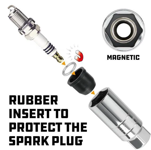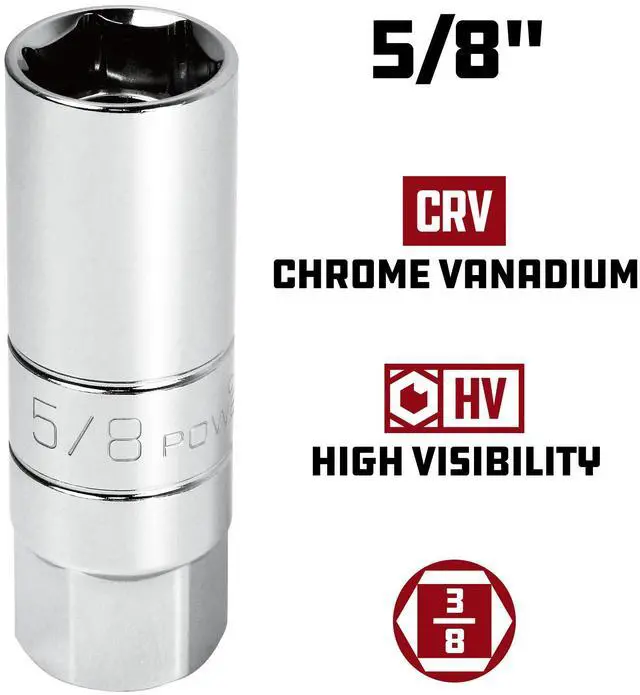 Spark plugs are unique. Having the right size socket for your vehicles plugs is a must. You need a strong tool to release stubborn stuck plugs yet a soft touch so you dont do any damage. The Powerbuilt 2 Piece Magnetic Spark Plug Socket Set includes two of the most common sizes 3/8 Inch Drive 5/8 Inch and 13/16 Inch Spark Plug Sockets. These sockets are strong as well as protective of the spark plugs. The premium Chrome Vanadium steel sockets have a mirror polished chrome finish for durability yet have an innovative rubber insert to protect the spark plugs and center hole punched for added work depth.