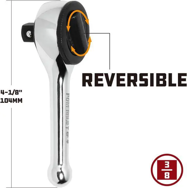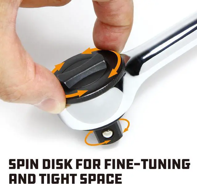 Constructed using Chrome Vanadium steel with a mirror-polished finish, Powerbuilt spin disc ratchets allow you to quickly loosen or tighten a fastener with just one hand. This ratchet features a 42 tooth gear mechanism in a stubby size that will make it easier to work in tight spaces. Precision crafted to exceed ANSI standards for quality and performance.