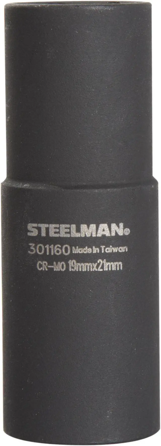 The STEELMAN 301160 1/2-Inch Drive Impact Flip Socket, 19mm x 21mm was designed to save you time. This dual-ended, 6-point metric flip impact socket allows you to work on both 19mm and 21mm lug nuts or fasteners without having to constantly switch sockets. It’s constructed of hardened chromoly steel to withstand high-torque applications. Fitting easily over an impact extension or onto an impact wrench's extended anvil this socket's recessed edges provide the most accurate fit possible, gripping fasteners by the sides and not the edges which results in reduced slippage and rounding/fastener damage. Whether you’re a professional mechanic or just love to work on your own cars and vehicles, this flip impact socket is a must for working efficiently!