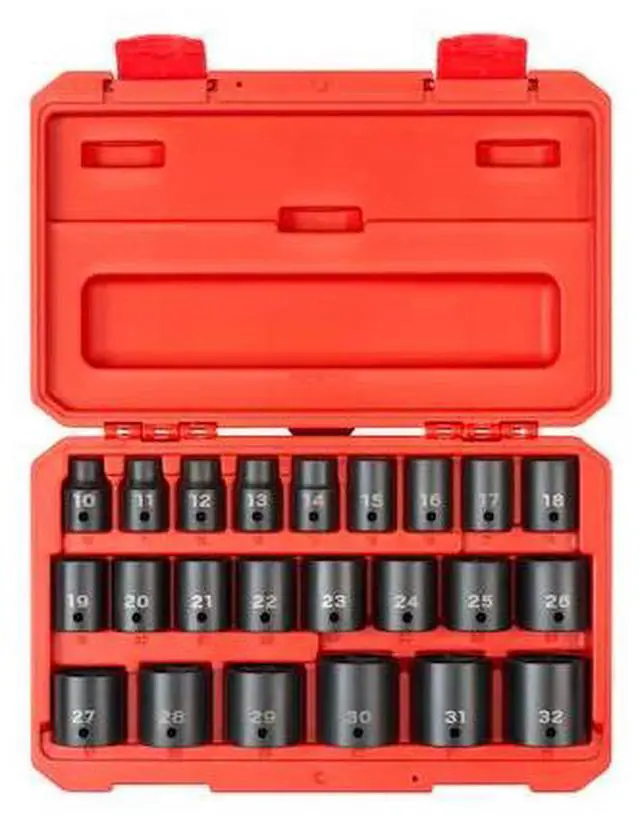 TEKTON SID92322 1/2 Inch Drive 6-Point Impact Socket Set, 23-Piece (10-32 mm)
