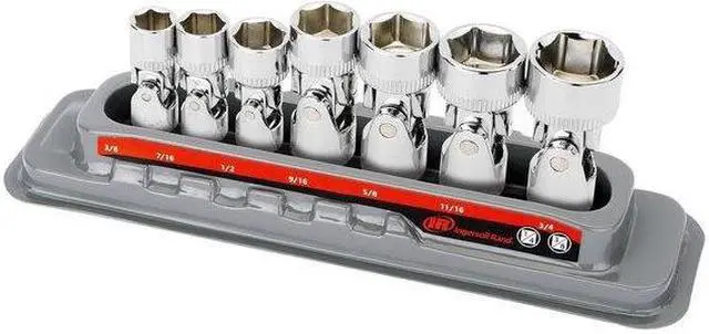California Proposition 65: This product contains a chemical known to the State of California to cause cancer. California Proposition 65: This product contains a chemical known to the State of California to cause birth defects or other reproductive harm.Ingersoll Rand® universal joint sockets are constructed of industrial-grade Chrome Vanadium steel that exceeds ANSI standards. Each socket is finished with mirror-polished chrome plating. IR signature vertical knurling offers better grip and easier handling with greasy hands. The set includes a patent-pending thermoform socket tray that keeps sockets organized and easy to identify by standing sockets on end for 360-degree visibility. CONTENTS:
