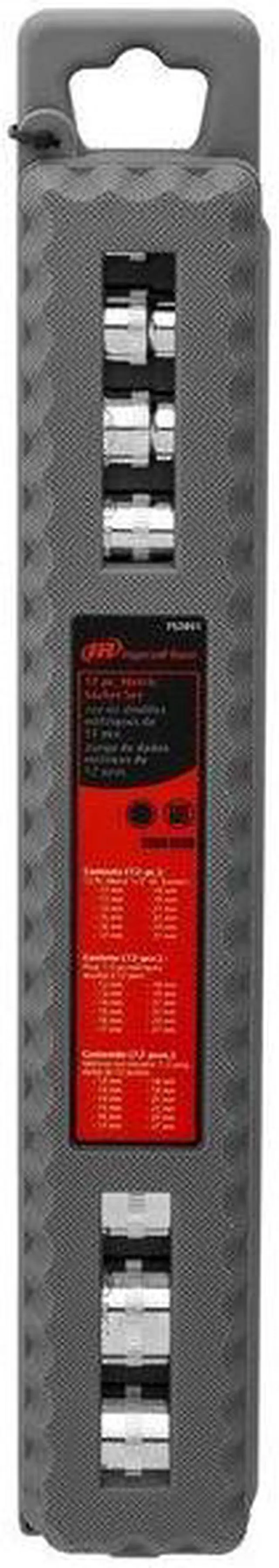 California Proposition 65: This product contains a chemical known to the State of California to cause birth defects or other reproductive harm. Ingersoll Rand® 12-point shallow sockets are constructed of industrial-grade Chrome Vanadium steel that exceeds ANSI standards. Each socket is finished with mirror-polished chrome plating. Ingersoll Rand® signature vertical knurling offers better grip and easier handling (especially with greasy hands). The set includes a heavy-duty storage case with snap closures and a hang tab for pegboard storage.