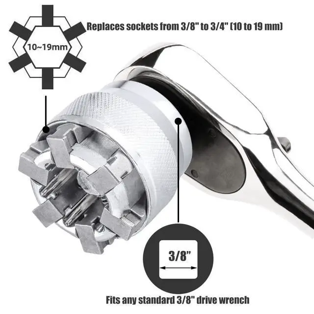 - Versatile Adjustable Design – This universal socket wrench easily handles nuts and bolts from 3/8" to 3/4" (10-19mm), eliminating the need for multiple sockets and saving time and storage space