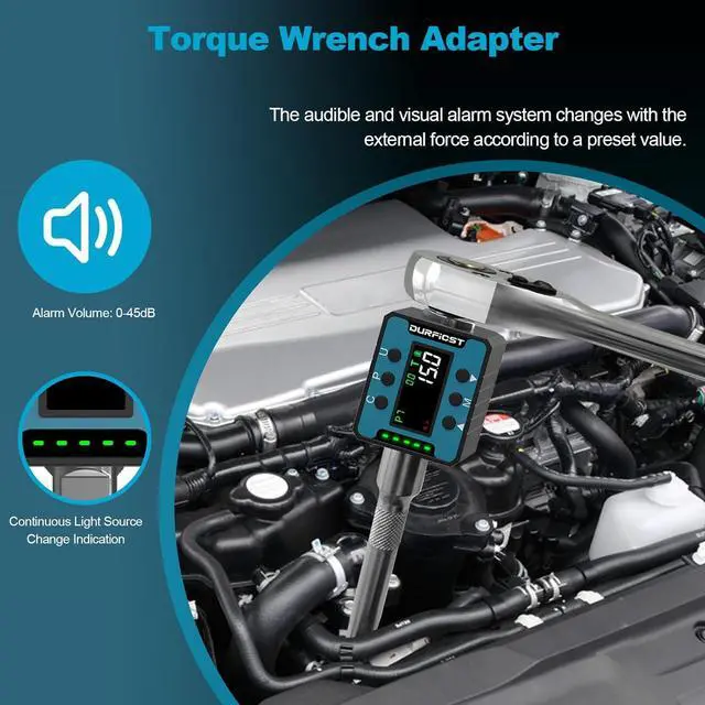 DURFICST Digital Torque Wrench, 1/2" Digital Torque Adapter with Backlight/Alarm, Electronic Torque Wrench Converter with ±2% Accuracy, Range 6-200 N.m,Buzzer and LED Indicator, for Automotive Repair