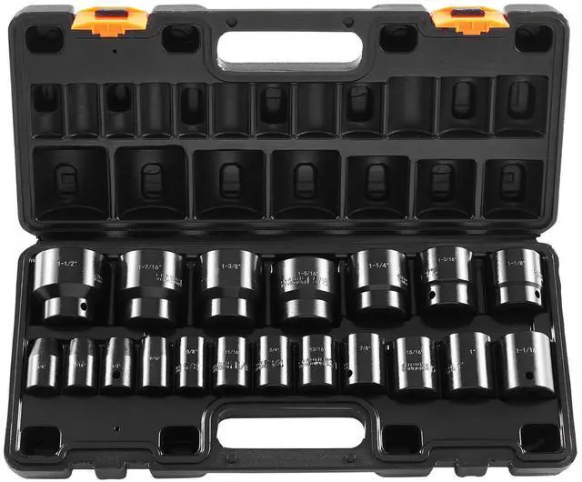 Impact Socket Set 1/2 Inches 19 Piece Impact Sockets, Standard Socket Assortment, 1/2 Inches Drive Socket Set Impact Standard SAE (3/8 Inches to 1-1/2 Inches) 6-point Hex Sockets