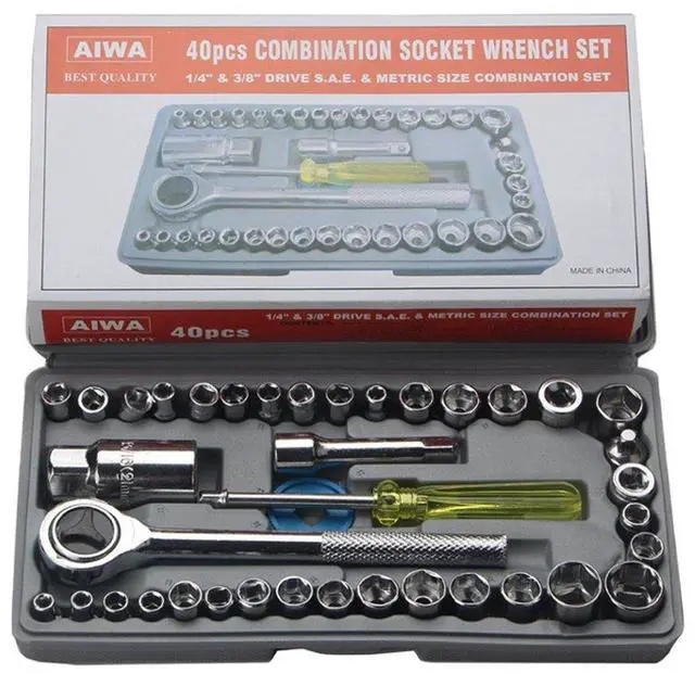 Stainless Steeel and ABS The Creative USA Aiwa 40 Pieces Multi-Purpose Combination Socket Wrench Set with 1/4" Ratchet, Multicolour