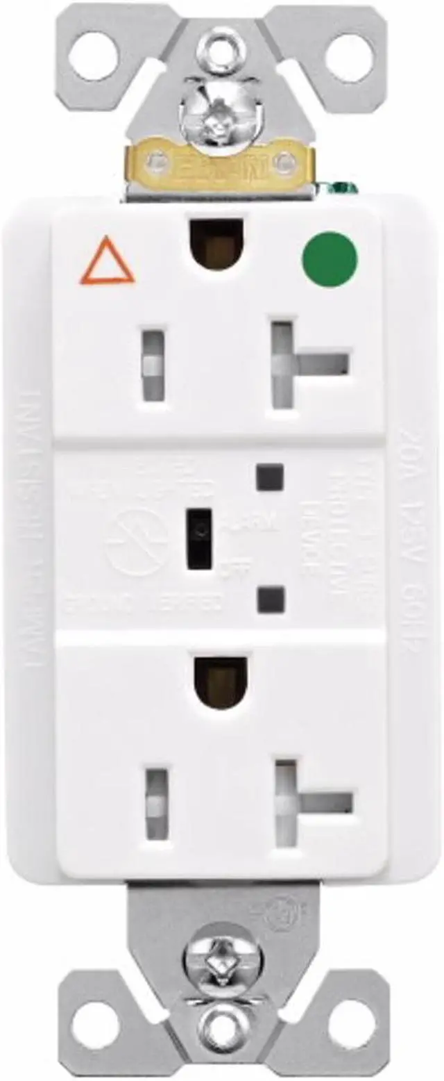 Eaton TRIG8362WS 20 Amp TVSS Surge Protection Duplex Receptacle w/Alarm and LED Indicators, Hospital Grade, Tamper Resistant, White, w/ LED indicators to verify surge protection and ground, 20A 125V