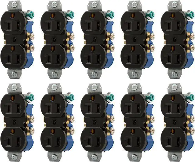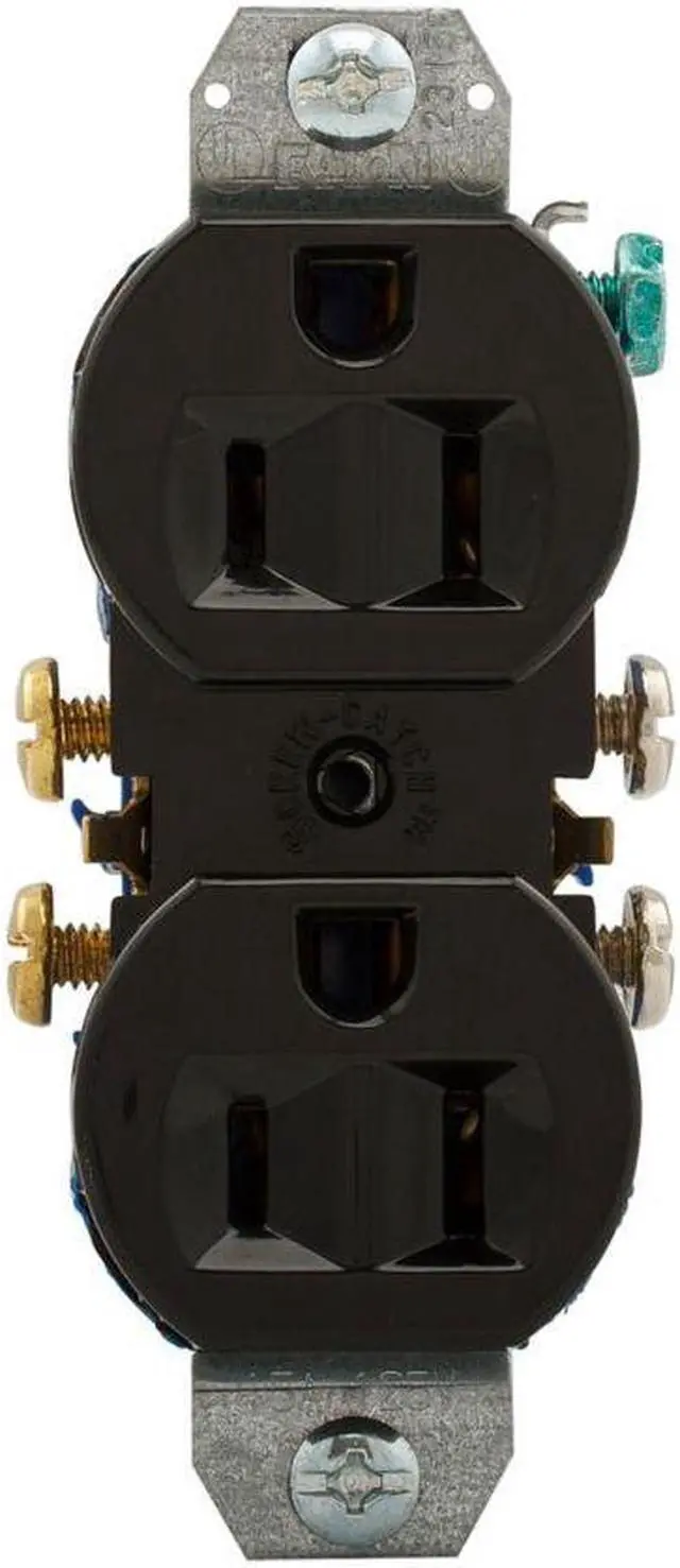 Eaton residential grade duplex receptacle, 4270BK, #14-10 AWG, 15A, Commercial|Residential, Flush, 125V, Side and push, Black, Brass, High-impact thermoplastic, 5-15R, Duplex, Screw, Thermoplastic, Core pack, no ears