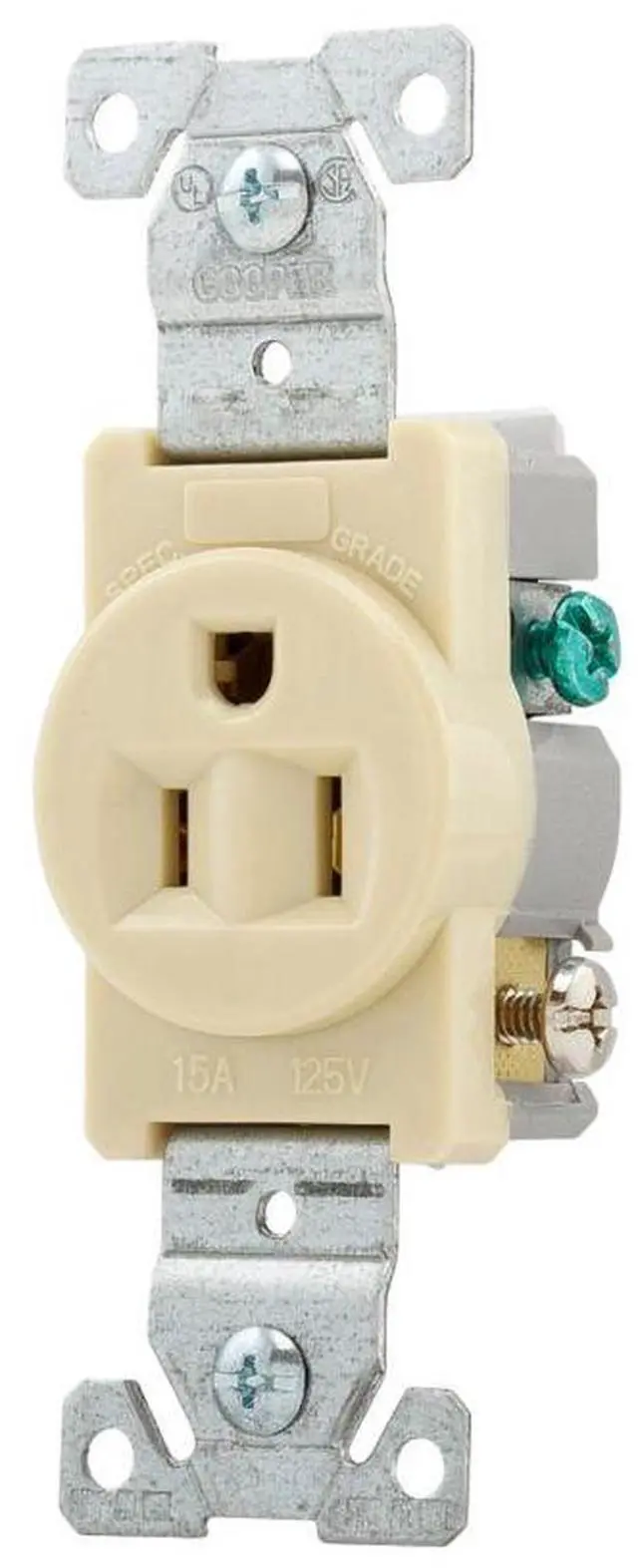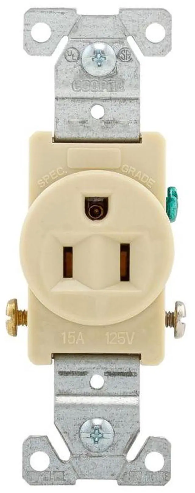 Eaton 817V Commercial Grade single receptacle, #14-10 AWG, 15A, Commercial, Flush, 125V, Side wire, Ivory, Brass, Nylon, 5-15R, Single, Screw, PVC, ED BoxKEY_TAB