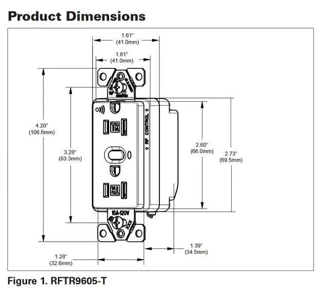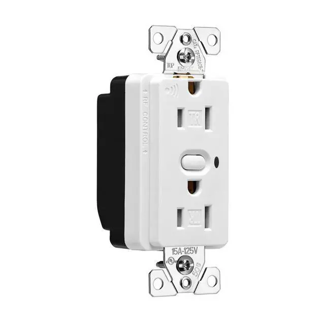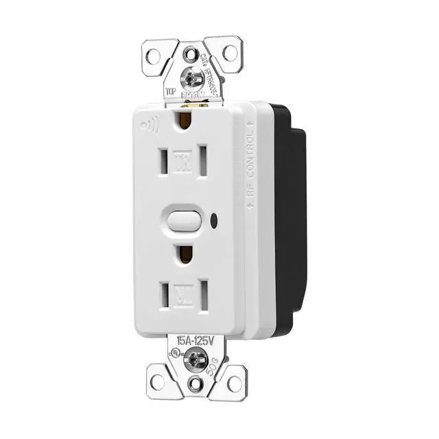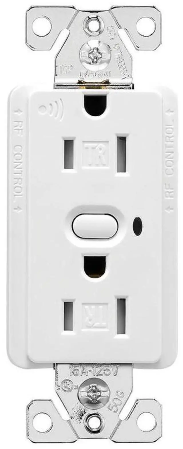 Eaton RFTR9605-TAW Eaton Z-Wave plus split control wireless receptacle, Tamper resistant, 15A, Residential, Flush mounting, 120V, Wire leads, Push button actuator, 60 Hz, Thermoplastic, Alpine white, 5-15R, Twopole, Three-wire, grounding, Decorator