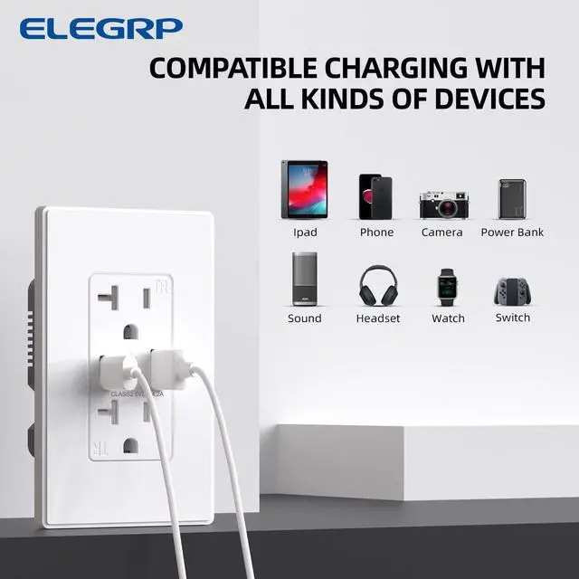 ELEGRP 15 Amp Wall Outlet with USB C Ports