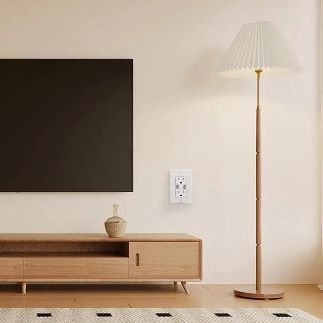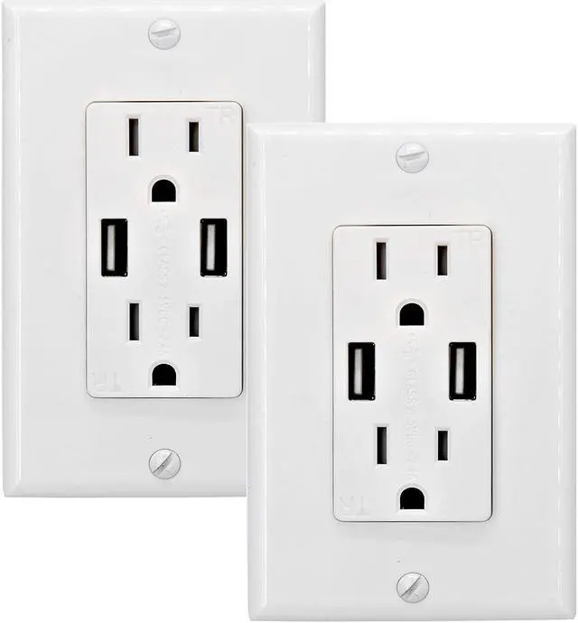 15A Tamper Resistant receptacles with wall plate increases safety, preventing objects from being inserted into the USB outlet.