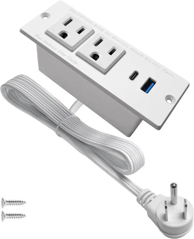 Recessed Mountable Power Strip Insert the power strip into desk, no more power cable hanging, keep your desk/ kitchen island clean and improve the desk/kitchen usage rate.