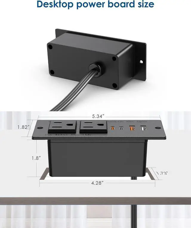 Easy to Assemble & Mini Size: According to the size of the picture, cut a rectangle in the table, place the recessed outlet in then screw it tight.Hole cut size: L 4.28" * W 1.73" * H 2".Creative flush mounts desktop design space saving. Mounts nearly flush into any surface.