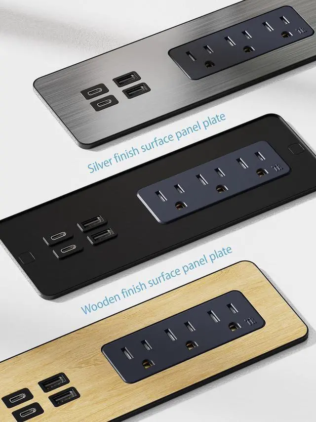 Great Table Decoration & Space Saver: We designed 2 different colors (Silver & Wooden) of alternative charging panel plate stickers. This allows you choose different panel stickers according to the color of the desk surface, so that this recessed power strip can better integrate or match with the overall environment. Besides,hidden below the furniture surface make it looks more clean and tidy.