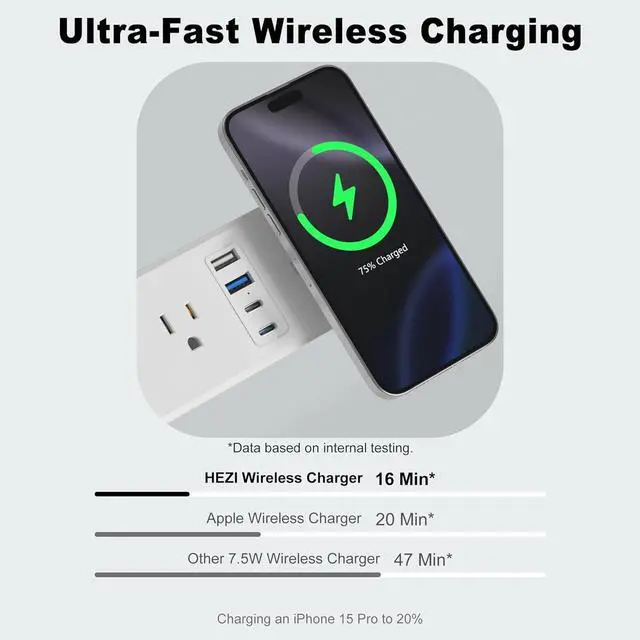 Surface mount Receptacle with Wireless ChargerMax 15W wireless charger panel compatible with all Qi standard devices.when the phone is fully charged, it automatically switches to trickle mode, preventing overcharging and taking care of the battery's health.