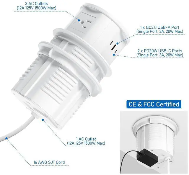 Upgrade your home or office with the ANNQUAN Pop Up Outlet – the ultimate solution for modern power needs!