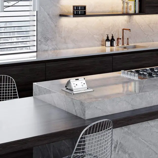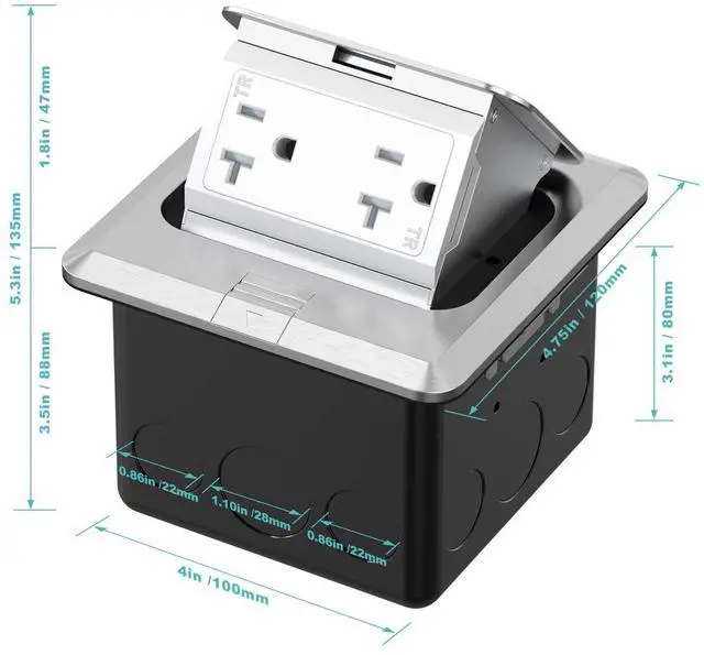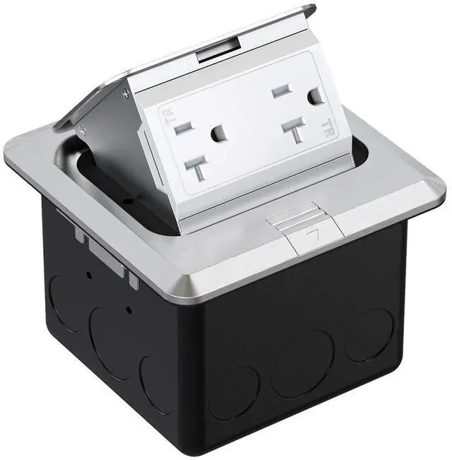 This Square Pop-Up outlet is an indoor floor box that provides 20A duplex power in a hidden and attractive pop up.
