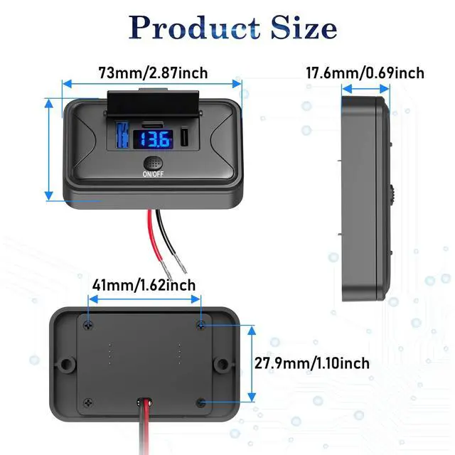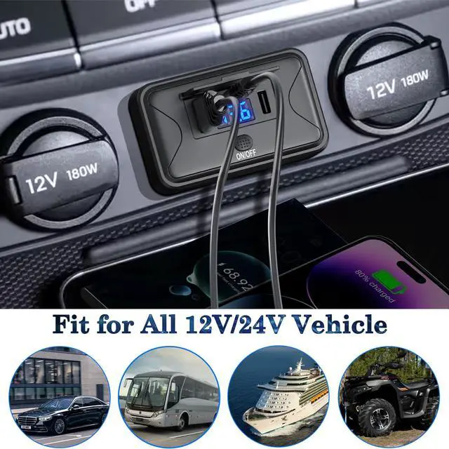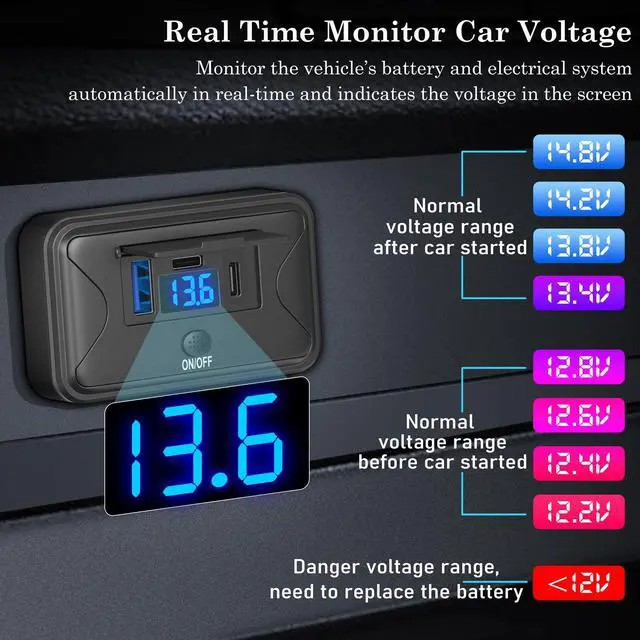 Features an LED voltmeter; the USB socket automatically monitors the vehicle's battery and the electrical system and indicates the car voltage on the screen. The 3 USB charger panel will let you know the battery's health.