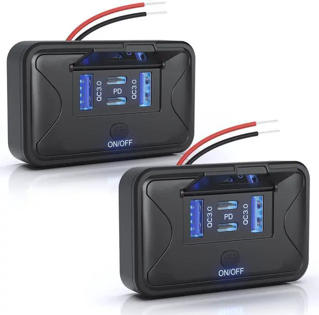 The rv 12v usb and c plugs wall mount works with almost any 12V/24V DC power system, including cars, trucks, RVs, campers, boats, motorcycles, and ATVs. The 12v usb outlet car is also great for DIY.