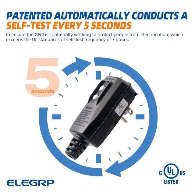 • [Patented Auto-Monitor Every 5 Seconds] This is the newer model of our original GFCI plug of G1215PA. This GFCI outlet will automatically conducts a self-test (auto-monitor) every 5 seconds to ensure the GFCI is continually working to protect people from electrocution, which exceeds the UL standards of self-test frequency of 3 hours.