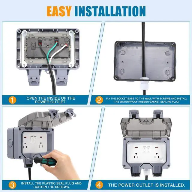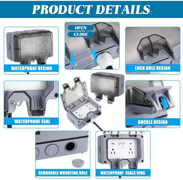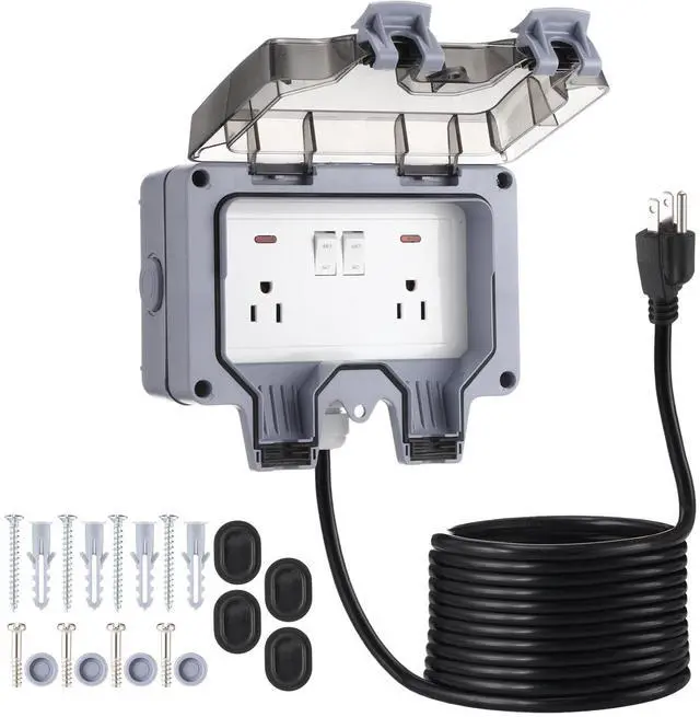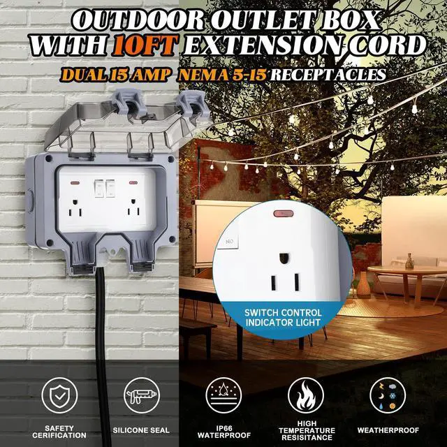 Dual outlet (NEMA 5-15R) design allows you to connect two devices at the same time, suitable for outdoor lighting, tools and appliances.