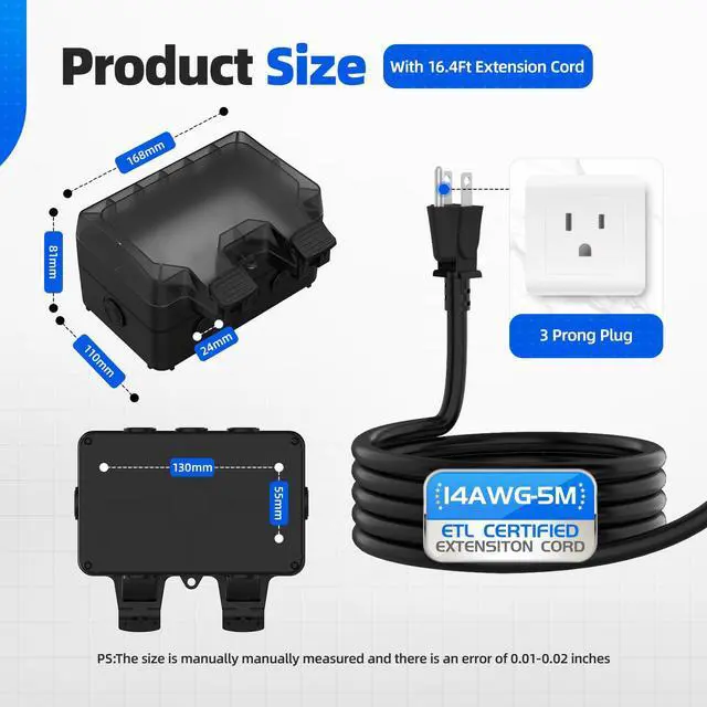 This outdoor plug and socket is designed for outdoor use,suitable for garden, patio, garage, lawn, bathroom, swimming pool, shed and many other outdoor scenes. It can be connected to lawn mowers, trimmers, sprinklers, etc, ideal for outdoor power supply and temporary power