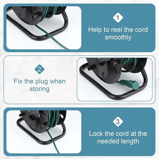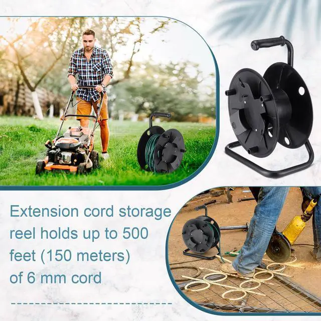 Size: extension cord reel holds up to 500 feet (150 meters) of 6 mm cord