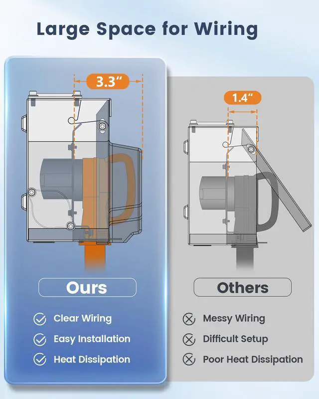 With a larger and thicker box, our 30 amp RV receptacle accommodates various cables, including heavy-duty RV power cords,more reliable power supply.