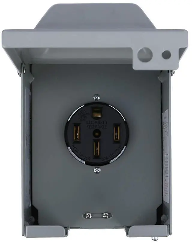 This power outlet box is constructed to provide consistent dependable power to RVs. A 50 amperage electrical panel with an outdoor rated NEMA 14-50R receptacle and 125V/250V for travel trailer, campers, generator and electric car at your home, parking space, garage, yard or camping ground. This power outlet panel has enough room for wirings and protection of plugging in the 50A RV cord. The door is very easy to open and close and lockable to avoid unauthorized use even while it's plugged in. This Type 3R RV Power Outdoor Outlet Box is made of sturdy and high quality iron steel. The enclosure is powder coated which is reliably durable, it prevents rusts and can resist corrosions. This type 3R power outlet box withstands exposure to weather without any damage and has resistance to electric shock for safety.