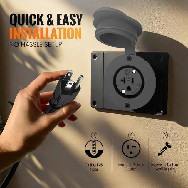 Industrial/Commercial Grade Flanged electric outlet features a rugged nylon flange that fits flush and won't crack in high abuse/ heavy duty applications.