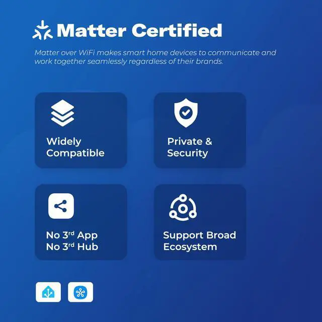 Easy integration into mainstream smarthome ecosystems, such as Apple Home, Alexa, and Google Home.